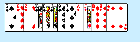 When your opponents use a Jacoby 2NT bid in response to a major suit opening, be very careful about entering the auction. Both of them have opening hands and they hold the majority of the points! With that said, you certainly want to consider bidding with very good distribution. If you have about an opening hand you can expect your partner to have almost nothing. There just are not enough points in the deck for anything else. Still, there are times when you should consider bidding. Ask yourself about the vulenerability - is it favorable for your side? And if your partner does not provide you with a single trick is your sacrifice going to give you a better score than what they can make if they play the hand? With a single-suited hand and a very long suit most people know what to do - preempt as high as you dare! But what about two-suited hands? If you bid one you will hide the other and that's surely where your fit will be found. Consider this as a reasonable criteria for bidding: Do you have great distribution that will help overcome the high cards held by the enemy? Do you have a method to describe your two-suited hand to your partner? You do need to get him involved. Most of the time you should carefully consider entering the auction anytime you have a decent two-suited hand. The Other Major and a Minor Suppose the opening bid on your left is 1 and after your partner passes your RHO jumps to 2NT,